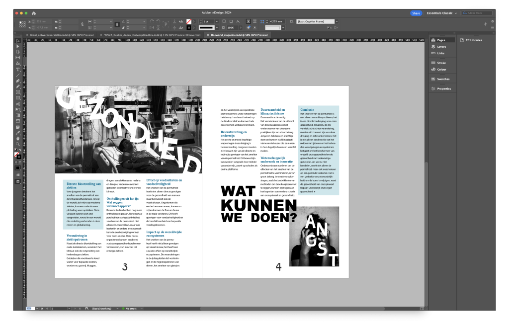 Indesign is het programma voor het opmaken van magazines, folders, visitekaartjes, flyers etc. Indesign is het programma dat wij op dit moment nu het meeste gebruiken. Ik heb er onder andere magazines, posters en folders opgemaakt in Indesign.